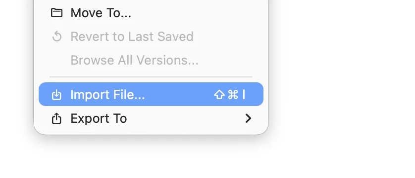 Select Import File… in File menu and select a file format. The contents of this file are added to the HTTP message history of the currently open document. Use shift-command-i keyboard shortcut to quickly open the file selection dialog.